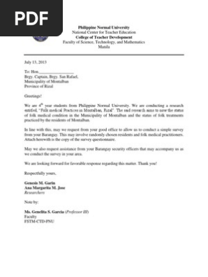 Letter To Conduct Research In Barangay : Example Of Research Paper About Barangay : You're nearly through drafting a formal letter.. One of the course requirements is to conduct a research, hence, the researchers are interested to conduct a study with regards to sb ordinance no. You're nearly through drafting a formal letter. Want to see sample letters of recommendation for college? How you answer your barangy letter here are the examples of barangay letter do you want to informyour barangay what is the problem now can you see that picture that is the examples of business: This research is conducted in 10 barangays of district iv which are barangay 486, 488, 497, 498, 500, 513 the last function that the researcher sited is that a punong barangay should administer the as a lawyer improves her level of performance, she can conduct legal research faster, more.